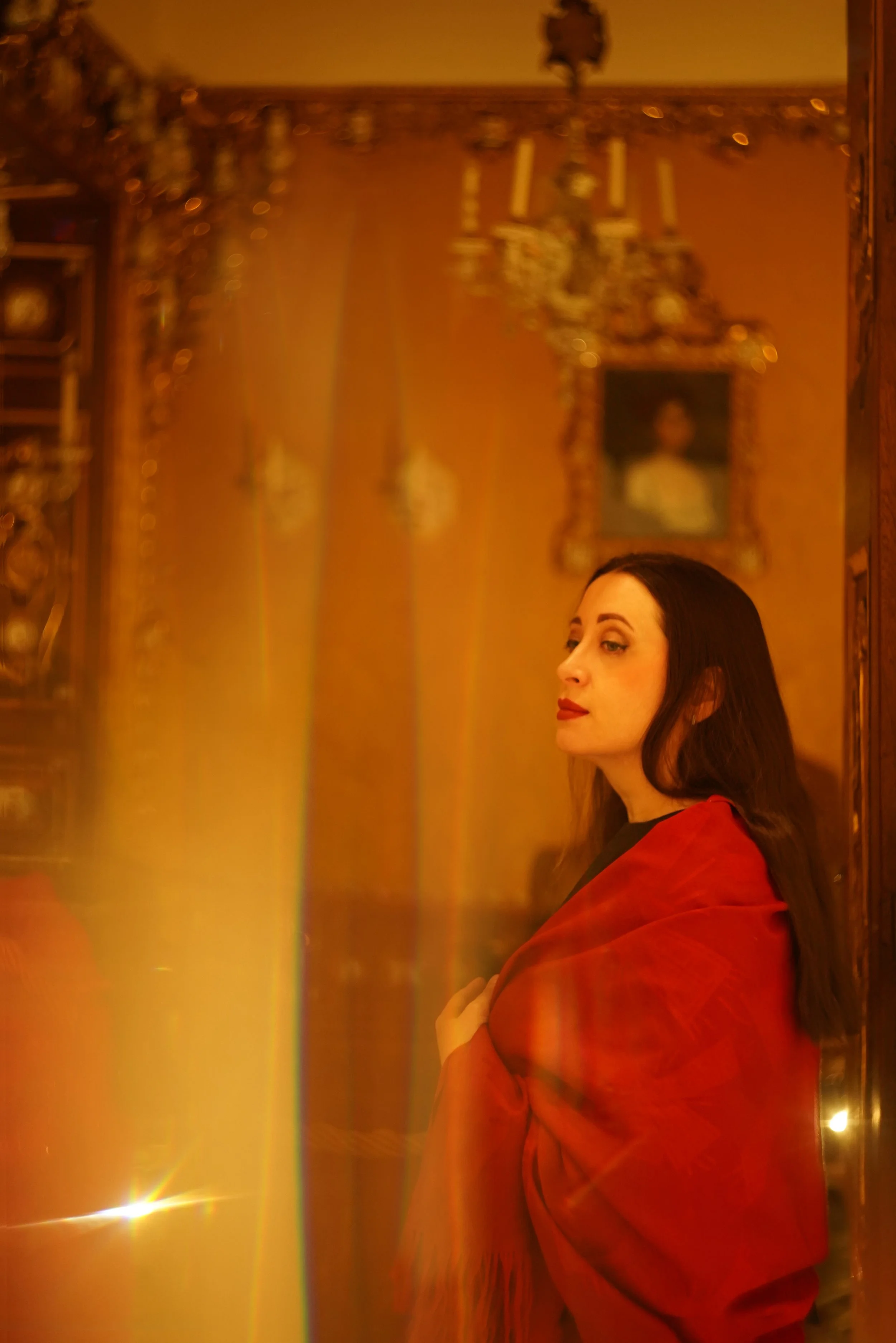 Das Licht bricht, schimmert und verwandelt das Modell in eine Muse des Malers. So entsteht ein faszinierendes Zusammenspiel von Kunst, Betrachter und Lichtreflexionen.